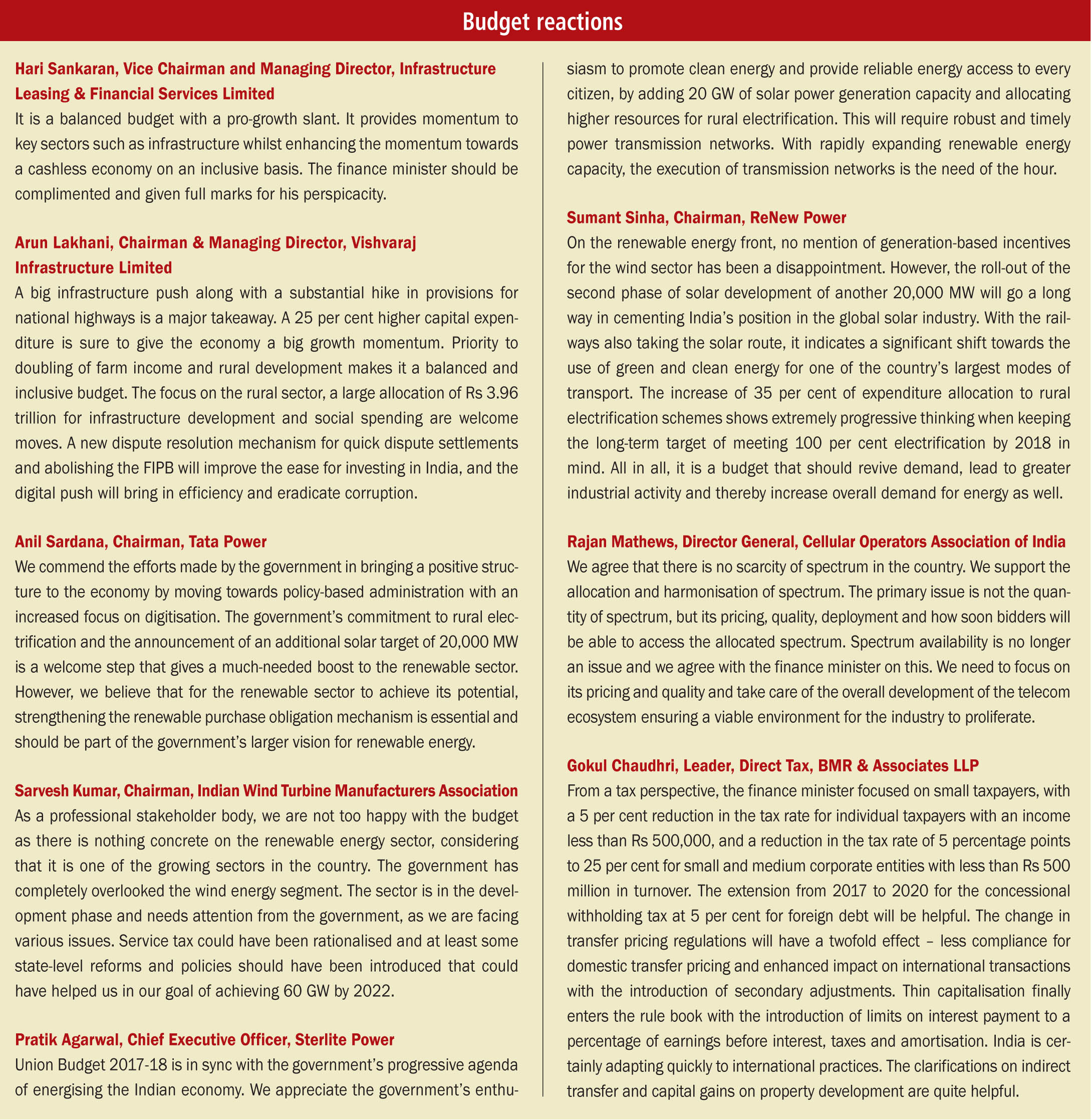 Net, net, the impact is fairly positive, especially in sectors such as railways, where some prudence and tough decisions are reflected. The proposal to introduce a mechanism to streamline institutional arrangements for the resolution of disputes in infrastructure has brought much relief. However, it remains to be seen how noteworthy announcements such as the Metro Rail Policy will take shape.
